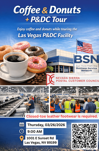 Join us for Coffee & Donuts and a tour of the P&DC Facility. Network, learn, and see USPS operations.